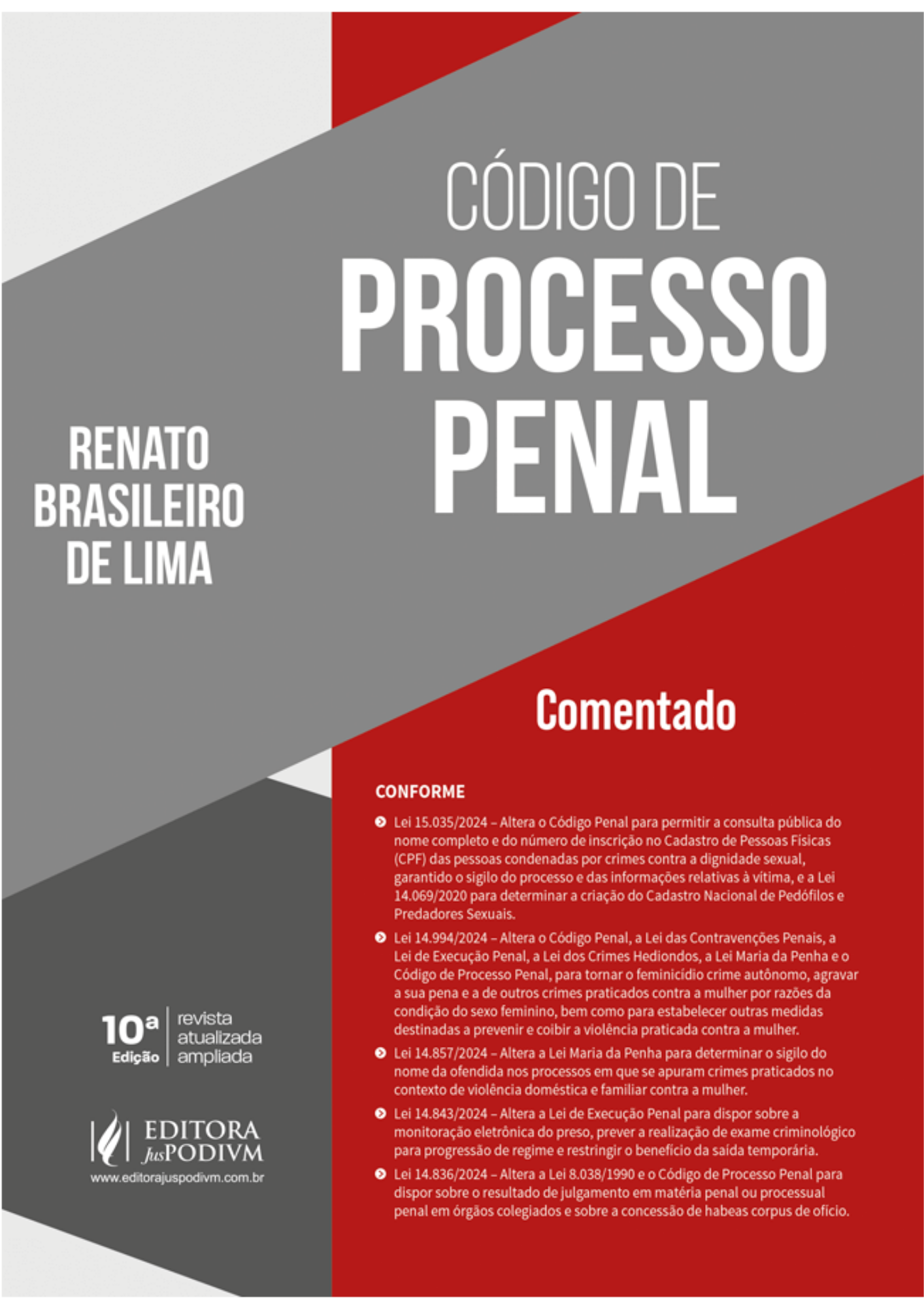 Código de processo penal e execução penal artigo comentado por artigo CUNHA, Rogério Sanches; PINTO, RonaldoBatista Ano: 2021 |